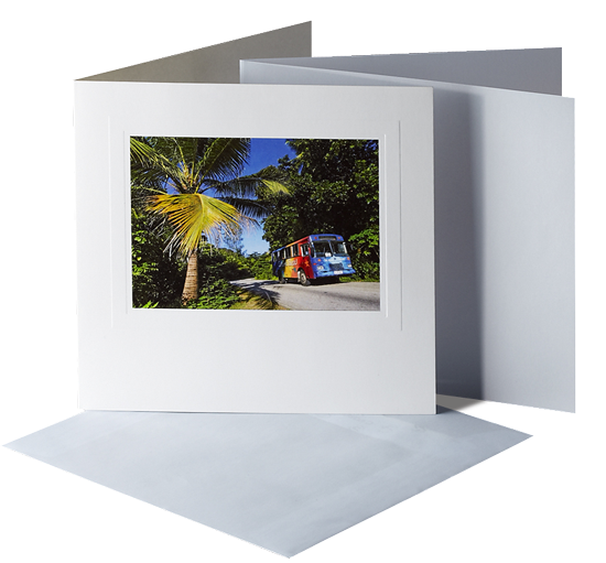Embossed greeting cards Folded format 15.5 x 15.5 cm Set includes translucent inlay with matching envelope packed in OPP flat bag